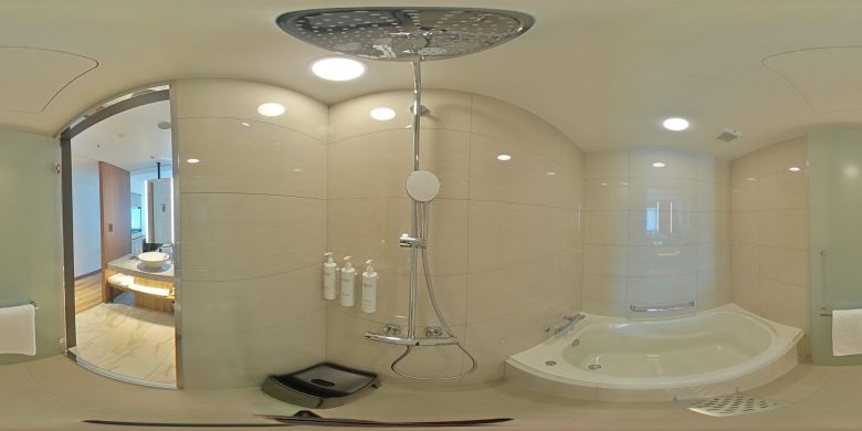 実はこのバスタブはプレミアムルームにはあり、デラックスルームにはないのです。